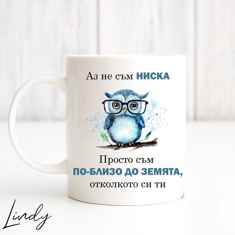 Чаша за подарък с надпис “Аз не съм ниска”
