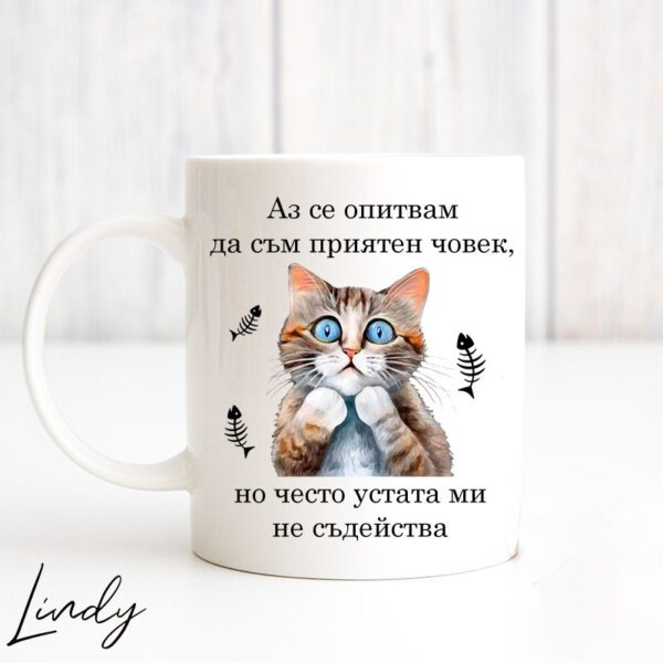Чаша за подарък с надпис “Аз съм приятен човек”