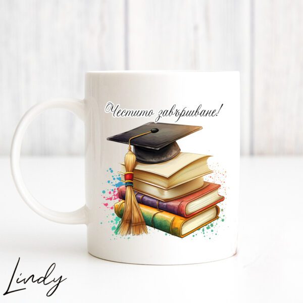 Персонализирана чаша за подарък с надпис “Честито завършване”