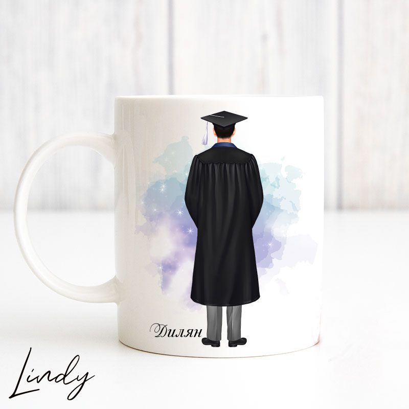 Персонализирана чаша с дизайн за момче, което се дипломира