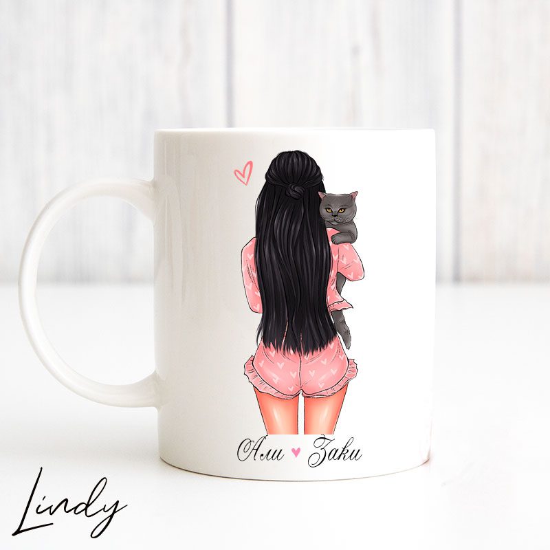 Персонализирана чаша за подарък “Момиче с коте”
