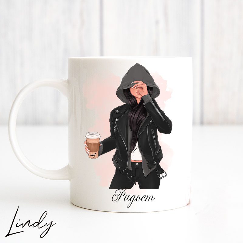 Персонализирана чаша за подарък “Момиче с кожено яке”