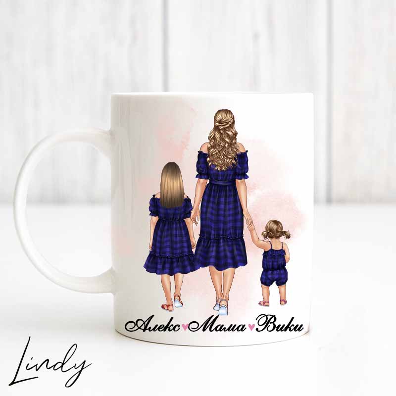 Персонализирана чаша за подарък “Майка с дъщери”