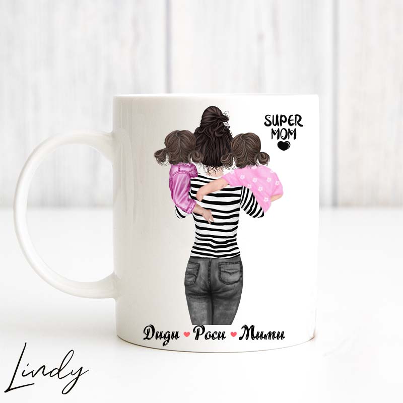 Персонализирана чаша за подарък “Майка с две деца”