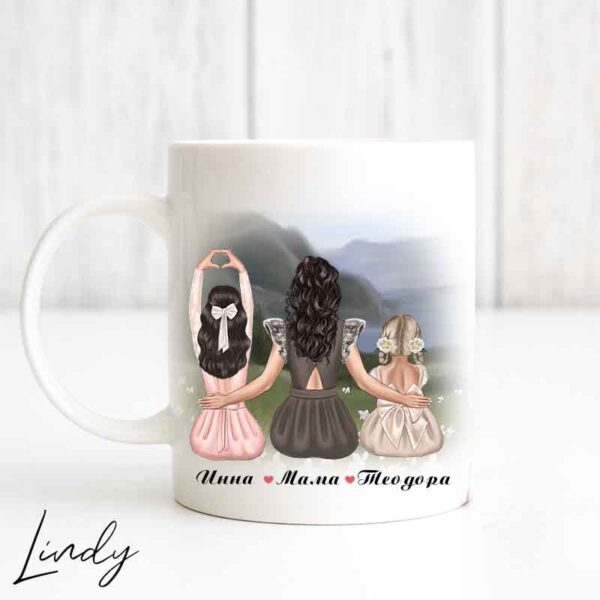 Персонализирана чаша за подарък “Майка с две дъщери”