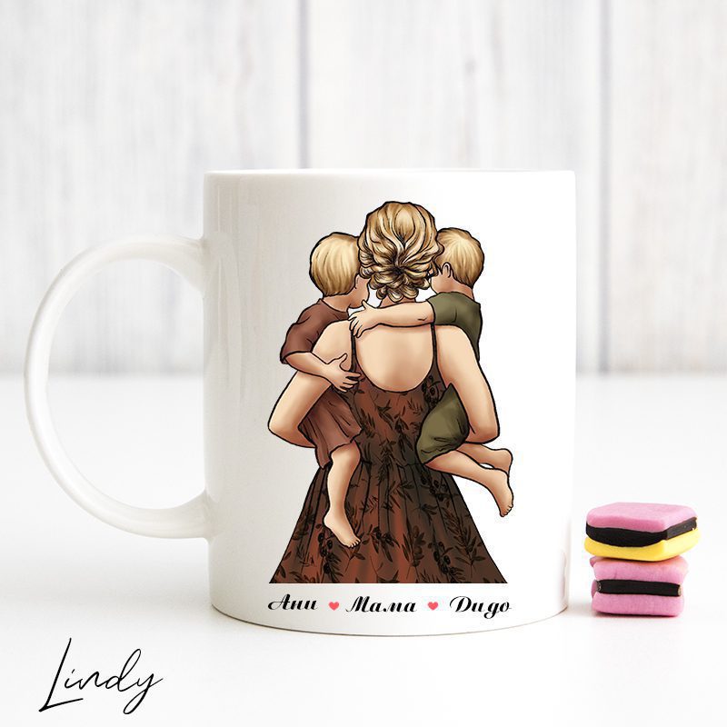 Персонализирана чаша за подарък “Майка с момиче и момче”