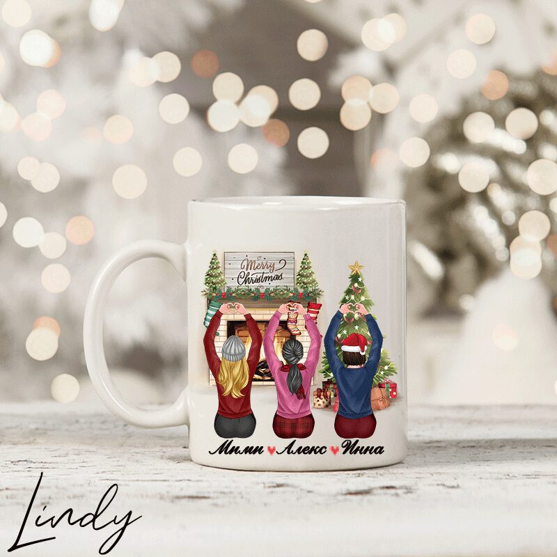 Персонализирана чаша за подарък “Приятелки, влюбени в Коледа”