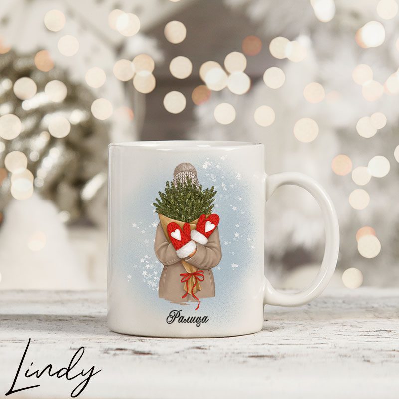 Персонализирана чаша за подарък “Коледно момиче с елхови клонки”