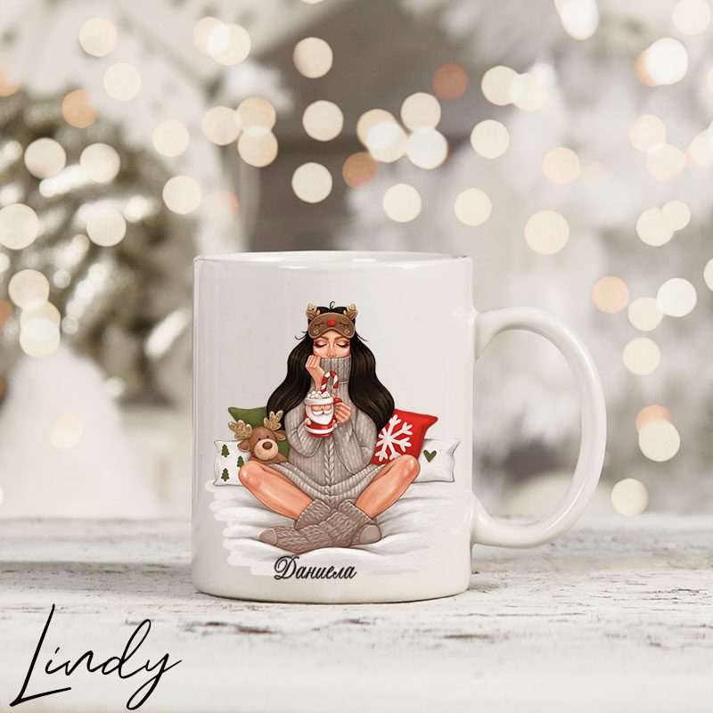 Персонализирана чаша за подарък “Коледно момиче с чаша”