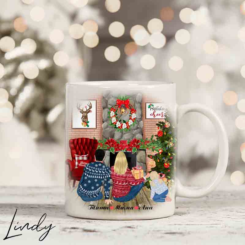 Персонализирана чаша за подарък “Семейство пред камината”