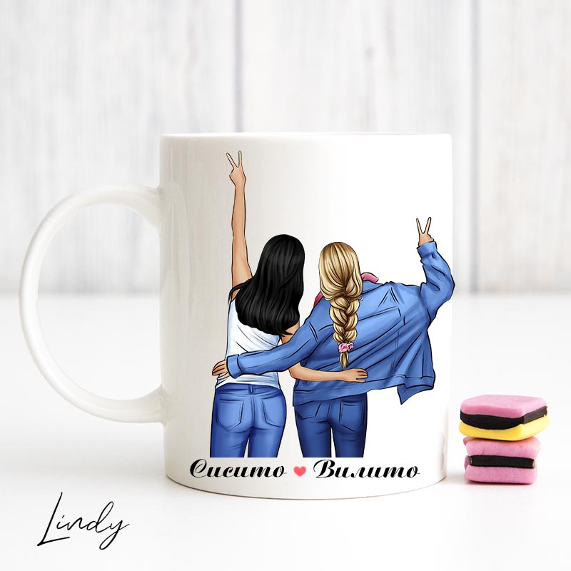 Персонализирана чаша за подарък “Прегърнати приятелки”