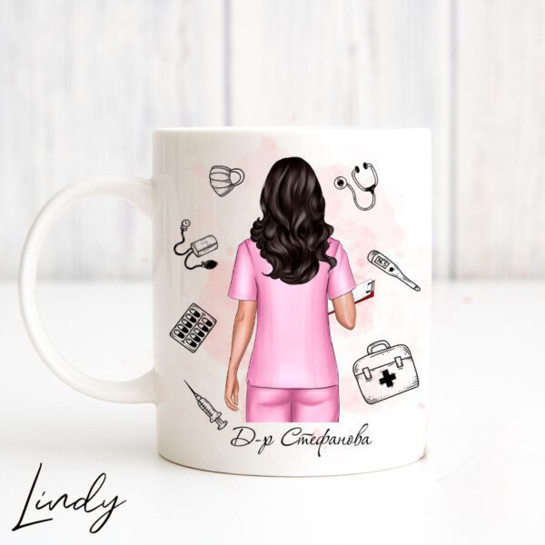 Персонализирана чаша за подарък за доктор с тематични елементи