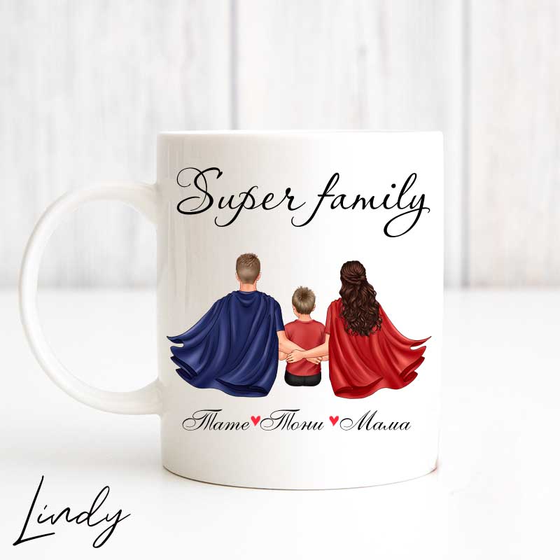 Персонализирана чаша за подарък “Super family”