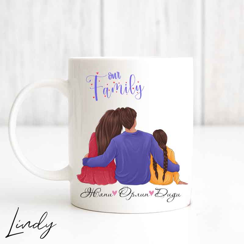 Персонализирана чаша за подарък “Семейство с момиченце”