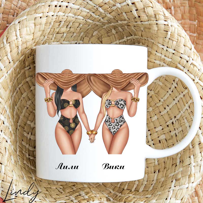 Персонализирана чаша “Приятелки на плаж с шапки”