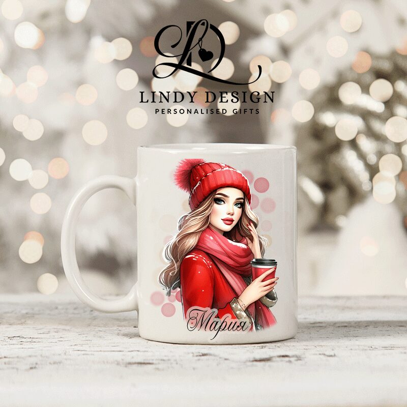 Персонализираната чаша „Коледно момиче“ е създадена за жените, които обичат празничния уют, аромата на топло кафе и магията на зимните дни. Елегантната визия с момиче в червено, облечено в топъл шал и шапка, носи усещане за празник, топлина и стил.