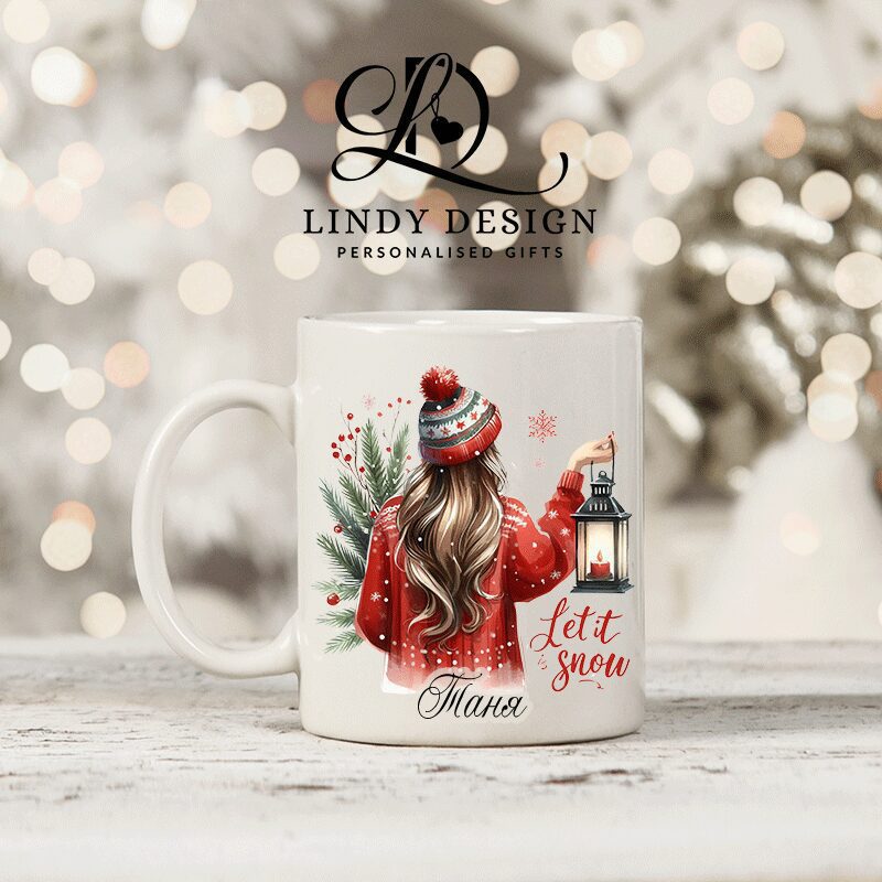 Персонализирана чаша за подарък “Коледно момиче с фенер”