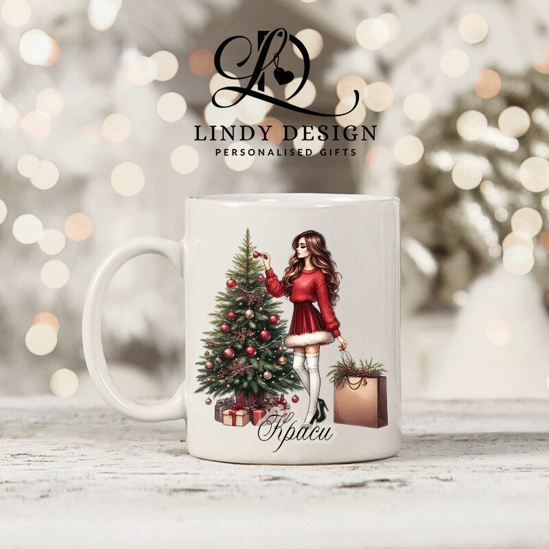 „Коледно момиче пред елха“ е стилен подарък, който носи усещане за празничност и топлина. Идеален избор за кафе, чай или горещ шоколад в зимните утрини.