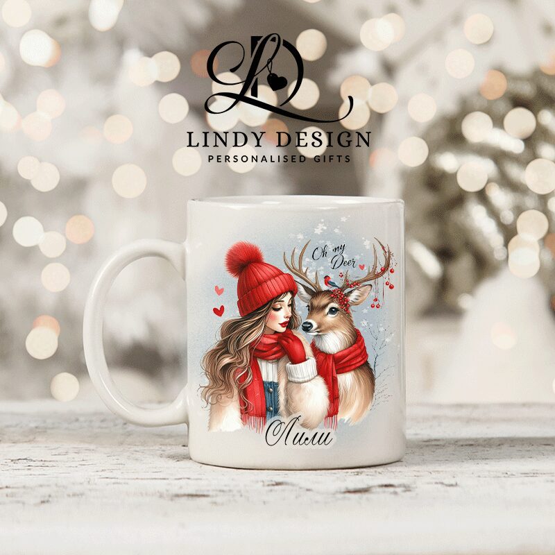 Персонализирана чаша за подарък “Коледно момиче с еленче”
