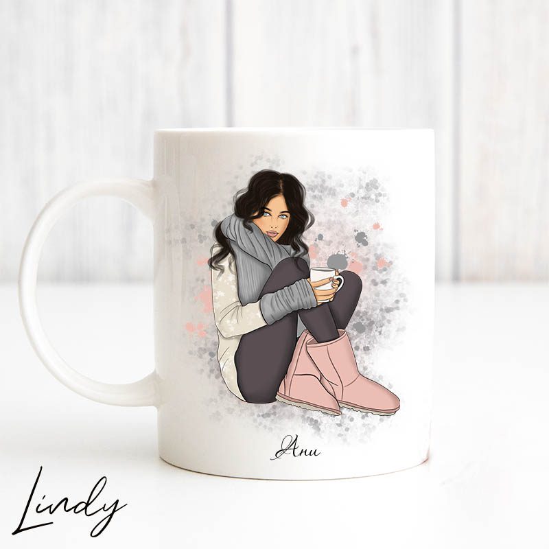 Персонализирана чаша за подарък “Момиче с чаша чай”