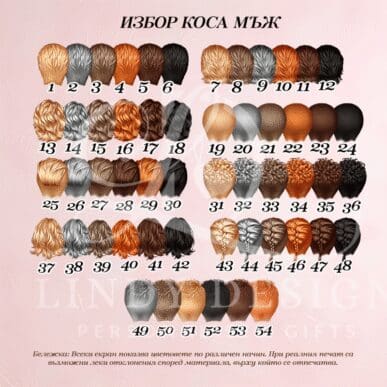 В обявената цена е включена персонализация с име и/или послание по избран дизайн. Това означава, че клиентът избира конкретен продукт от сайта, а ние добавяме името или текста, без да променяме визията.Ако клиентът желае промени по самата визия — като цвят на коса, облекло, фон, композиция или смесване на елементи от различни дизайни — се начислява допълнителна такса от +4.00 лв./ +2.05 евро. Причината е, че всяка такава промяна изисква нова графична изработка – дизайнът се изгражда отначало според подадените промени.