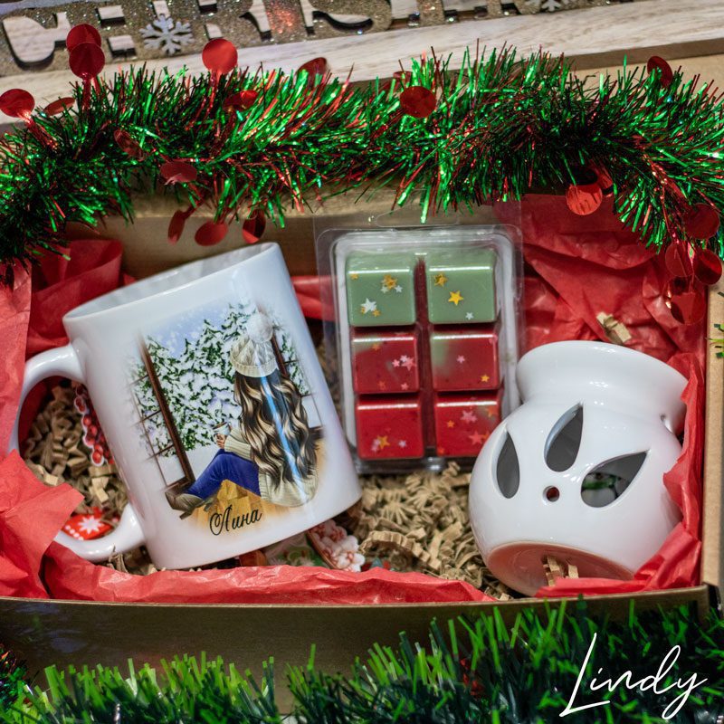Това е една страхотна подаръчна кутия, която ще донесе много щастие у получателя и ще направи коледните празници много по-приятни! Зарадвайте своята любима приятелка, майка, баба или сестричка или себе с този персонализиран коледен подаръчен комплект! Той е създаден само да ви носи уют през коледните празници – да изпиете чаша топъл чай, да поставите ароматните восъчни блокчета в арома лампата и да се насладите на коледния аромат, който ще изпълни въздуха.