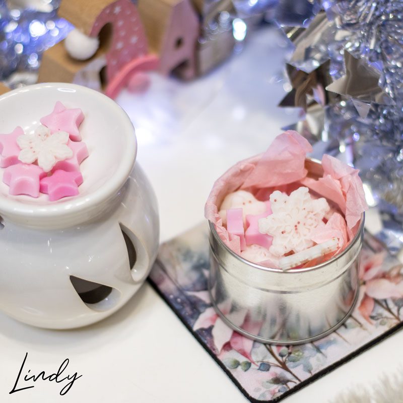 - Ароматни коледни восъчни фигурки – топилки (приблизително тегло 40г). Те са предназначени за арома лампа. След запалването на чаената свещ отдолу, започват да се разтапят и да ухаят с аромат “Бяла Коледа”! Топилките са изработени от 100% соев восък.;