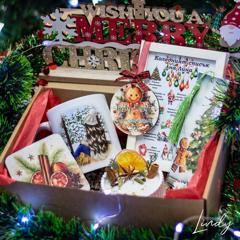 Това е една страхотна подаръчна кутия, която ще донесе много щастие у получателя и ще направи коледните празници много по-приятни! Зарадвайте своята любима приятелка или себе с този персонализиран коледен подаръчен комплект! Той е създаден само да ви носи уют през коледните празници – да изпиете чаша топъл чай, да запалите ароматната свещ, която можете да поставите върху красивата коледна подложка и да се отпуснете в компанията на любима книга! А постерчето ще ви напомня всяка Коледа колко неща може да направите, за да усетите Коледната магия! И да не забравяме, че всяка година трябва да окичим елхата с нова играчка…