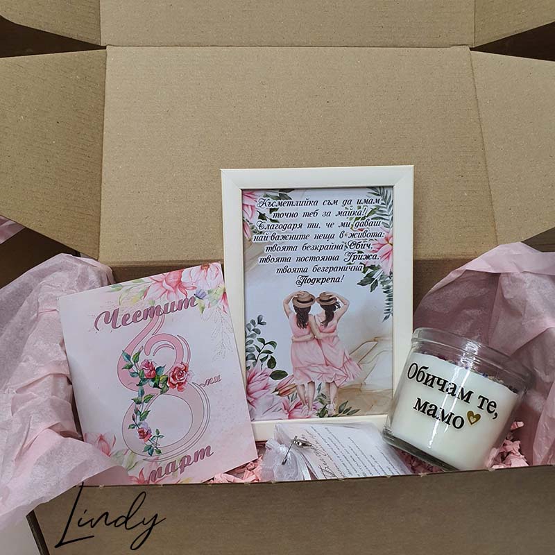 Lindy кутия подарък за мама за 8-ми март – комплект от рамка и свещ