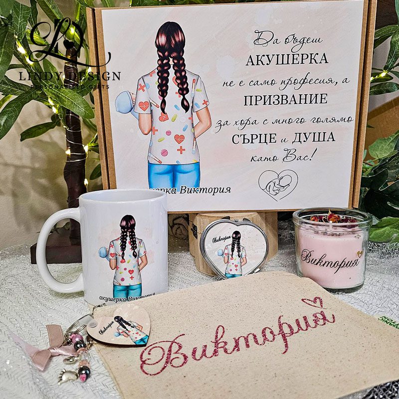 Персонализиран подаръчен комплект за акушерка или гинеколог