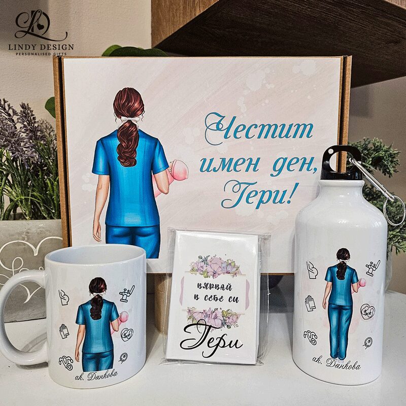 Персонализиран подаръчен комплект от чаша, бутилка и малко бележниче