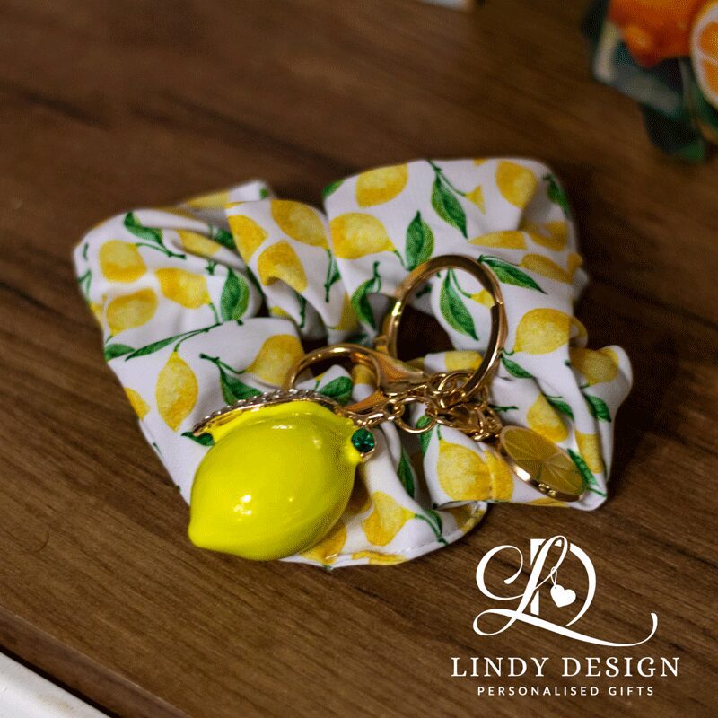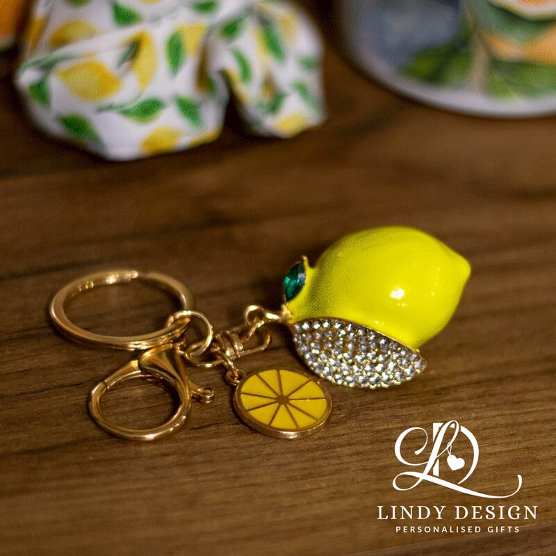 - Луксозен ключодържател „Лимон“ – с декоративна панделка и златна перличка. Подходящ за дамска чанта, раница или ключове.