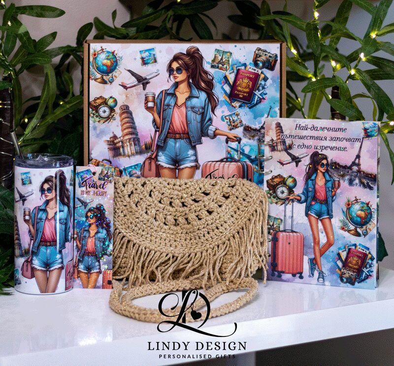 Персонализиран подаръчен комплект “Travel Girl” – с клъч