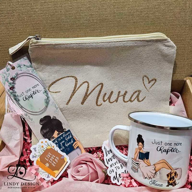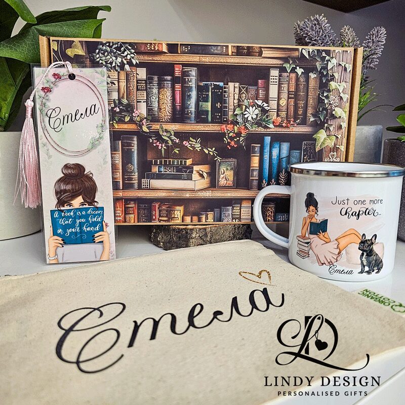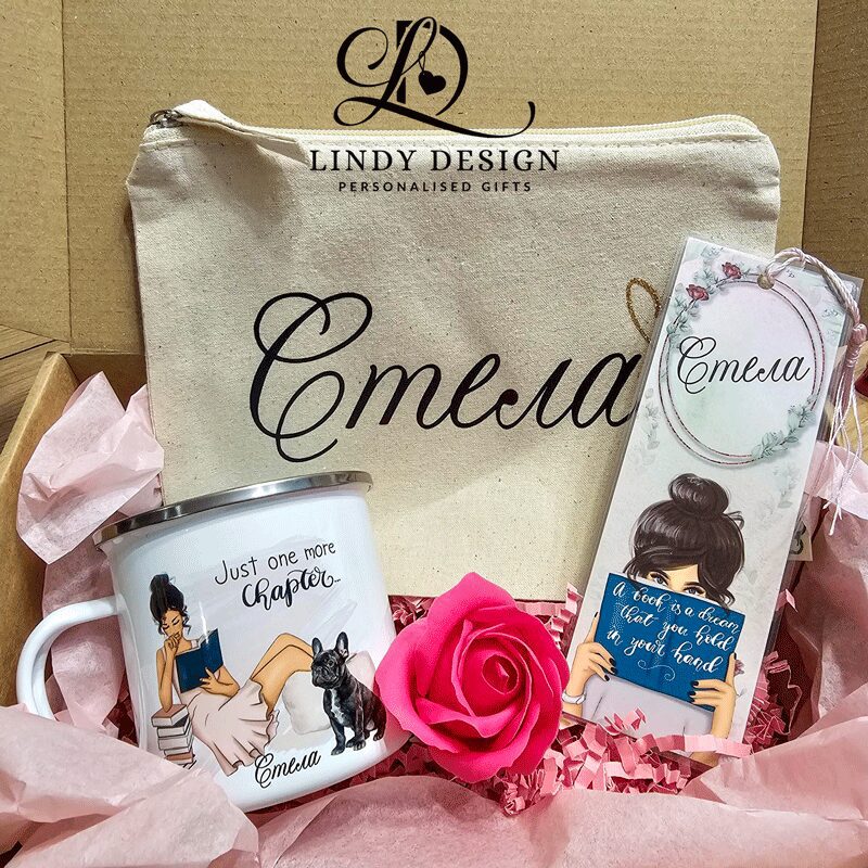Персонализиран подаръчен комплект от канче, несесер и книгоразделител
