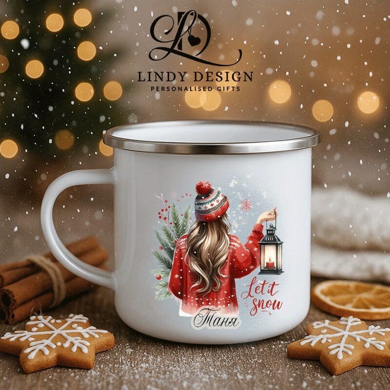Емайлираното канче „Коледно момиче с фенер“ от Lindy Design съчетава топлина, носталгия и коледен чар в едно. Лекото, устойчиво канче е подходящо както за дома, така и за пътуване — идеално за кафе, чай или греяно вино в студените дни.